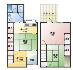 | 間取り | 3K(和6.6、洋9、K4) |